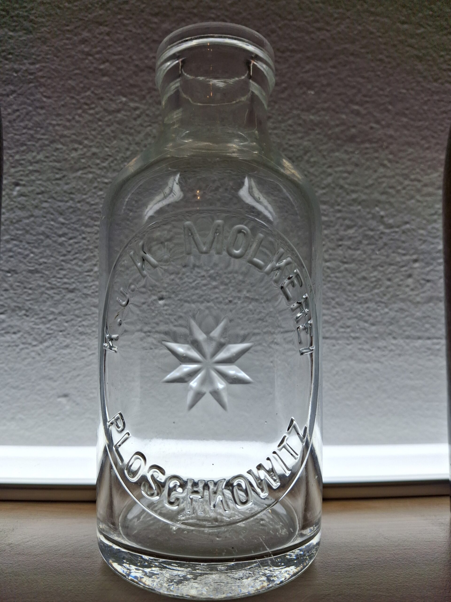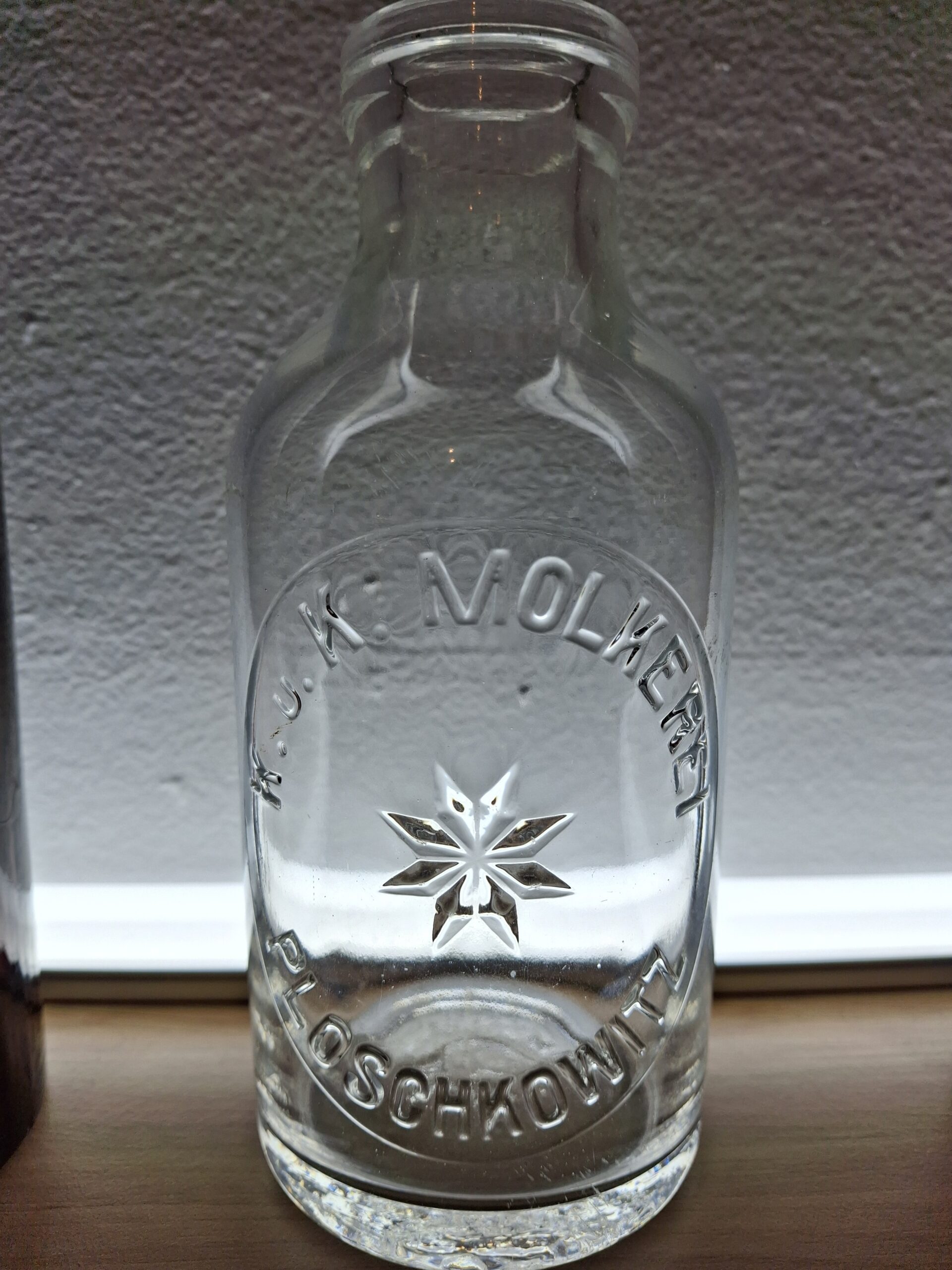 Po dlouhé době v podzimním nečase bychom rádi představili další lahvičku do sbírky….Jedná se o půlitrovou lahev z mlékárny v Ploskovicích, jenž sídlila ve statku v areálu místního zámku, patřícího císařsko-královské habsburské rodině, od roku 1878 pak císaři F.J.I.